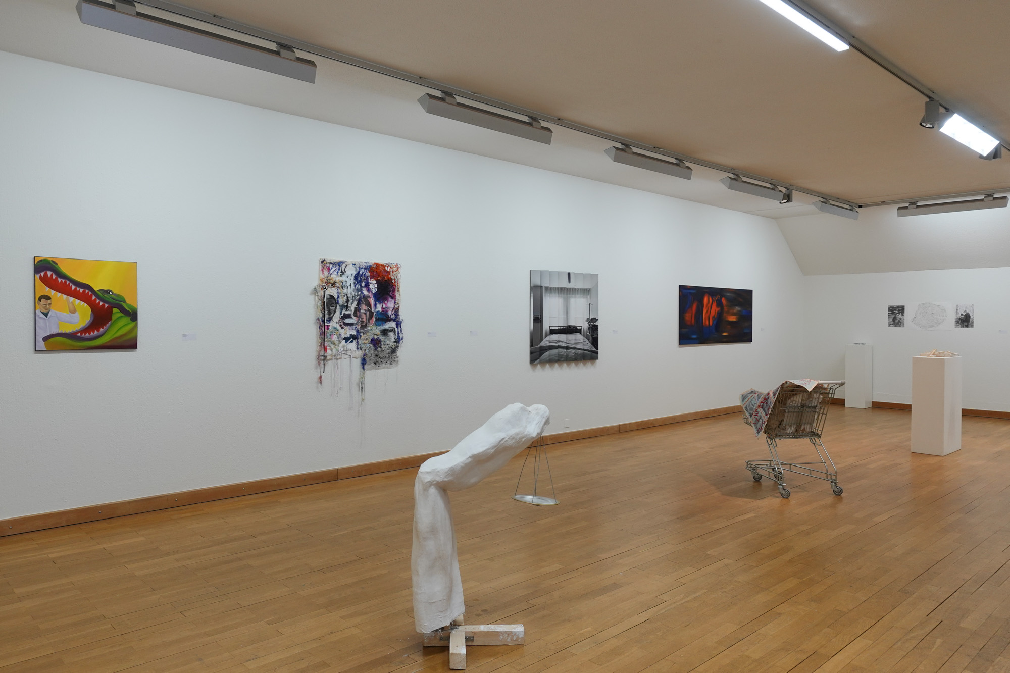 Jährlich präsentieren die Schüler:innen des Schwerpunktfachs Bildnerisches Gestalten der Kantonsschule Wettingen ihre Abschlussarbeiten im Rahmen einer Ausstellung. 2021 wurde diese «Werkschau» erstmals in der Galerie im Gluri Suter Huus ausgerichtet und hat seither einen festen Platz im Ausstellungsprogramm. Für die diesjährige Ausstellung wurde allen Schüler:innen die Aufgabe gestellt, einen Titel für ein Kunstwerk erfinden. Diese Titel wurden in selbst gebackenen Glückskeksen versteckt und wieder verteilt. Wer welchen Titel verantwortet, bleibt bis zuletzt ein glückliches Geheimnis…
