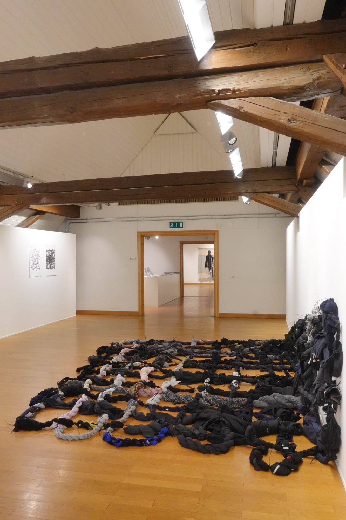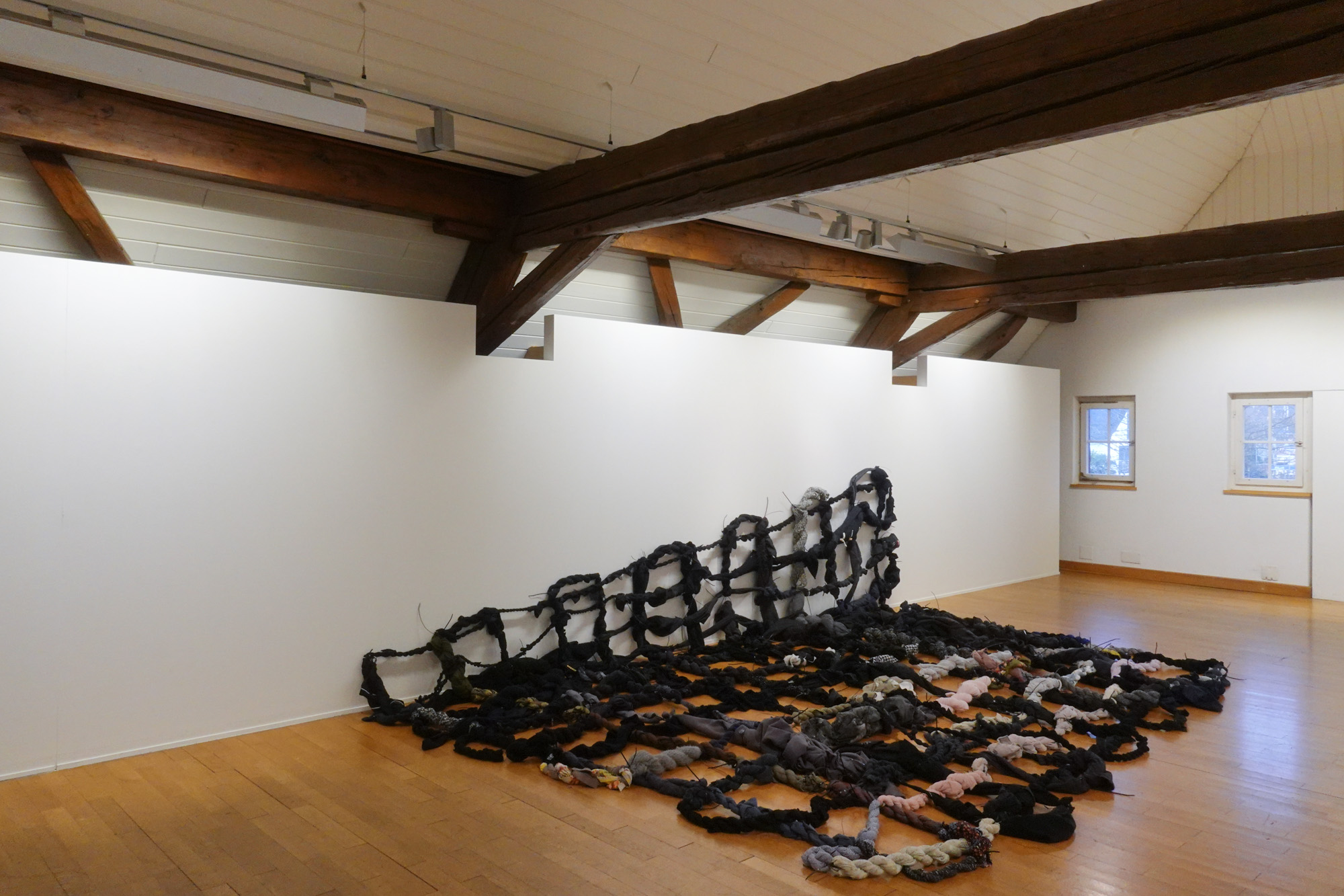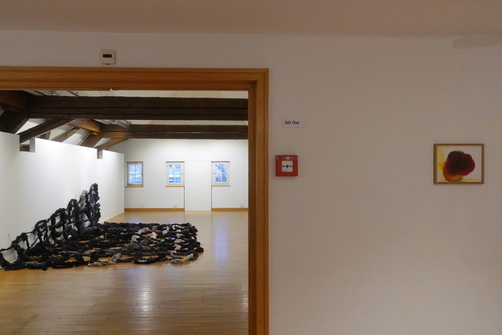 Die aktuelle Jahreszeit passt perfekt zur Darbietung dieser Ausstellung. Wie bei einem herbstlichen Baum, der langsam seine Blätter verliert, wird in den oberen Stockwerken das karge, aber unerlässliche Gerüst sichtbar. Nur noch wenige Farbtupfer zeugen von der Fülle des Sommers. Die Farben, vielfältiger als zuvor, sind mit den grossen Blättern nach unten gefallen. Nun kann die reiche Ernte eingefahren werden. Viele Kunstwerke der Ausstellung sind neu aus diesem Jahr, jedoch bieten einige ein Rückblick auf die letzten zehn Jahre. War vor 2020 nicht eine ganz andere Zeit? Hat sich unsere Wahrnehmung der Welt seither verändert?