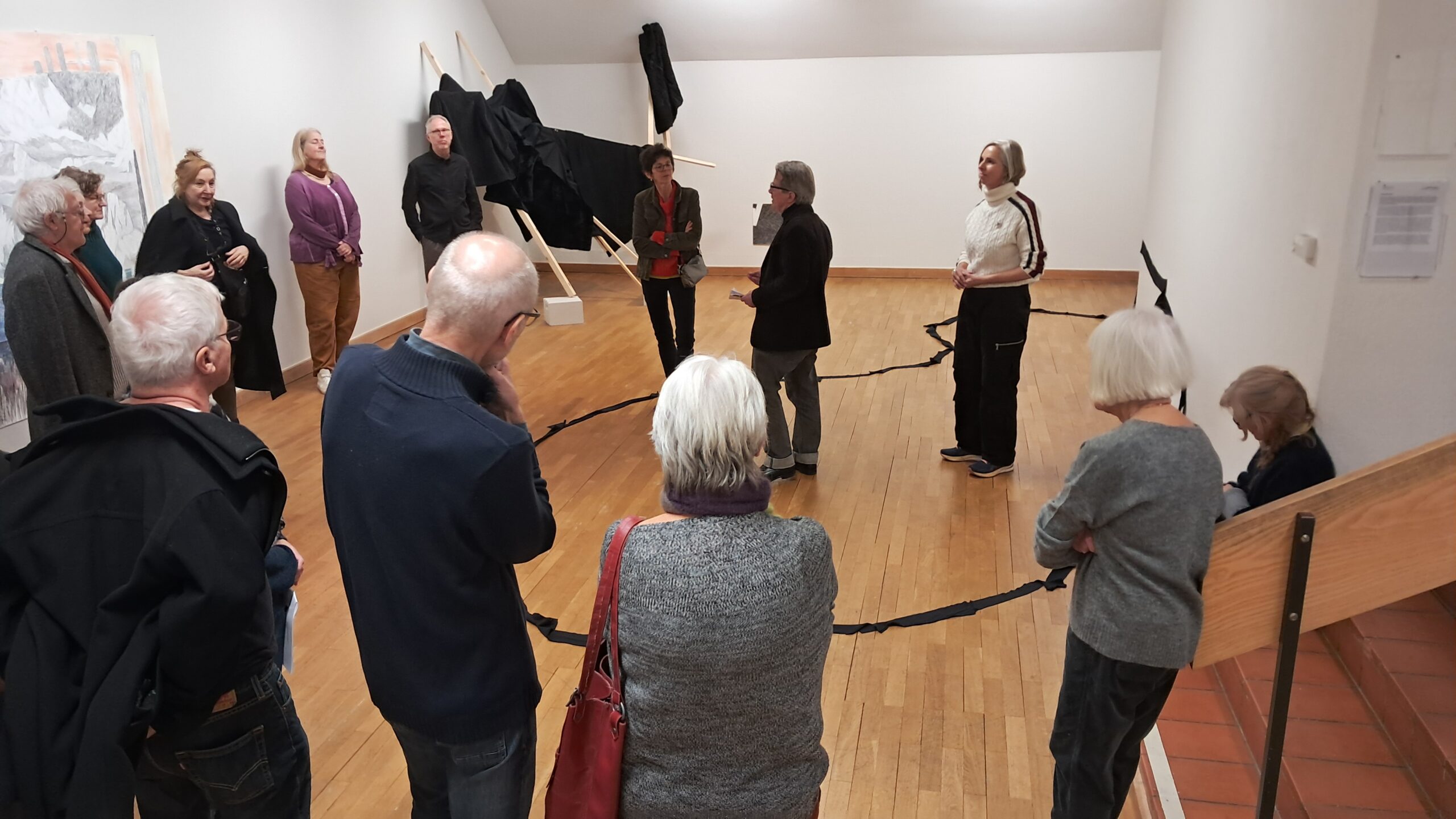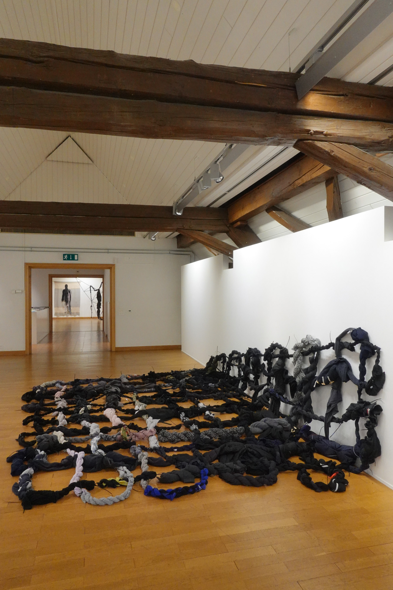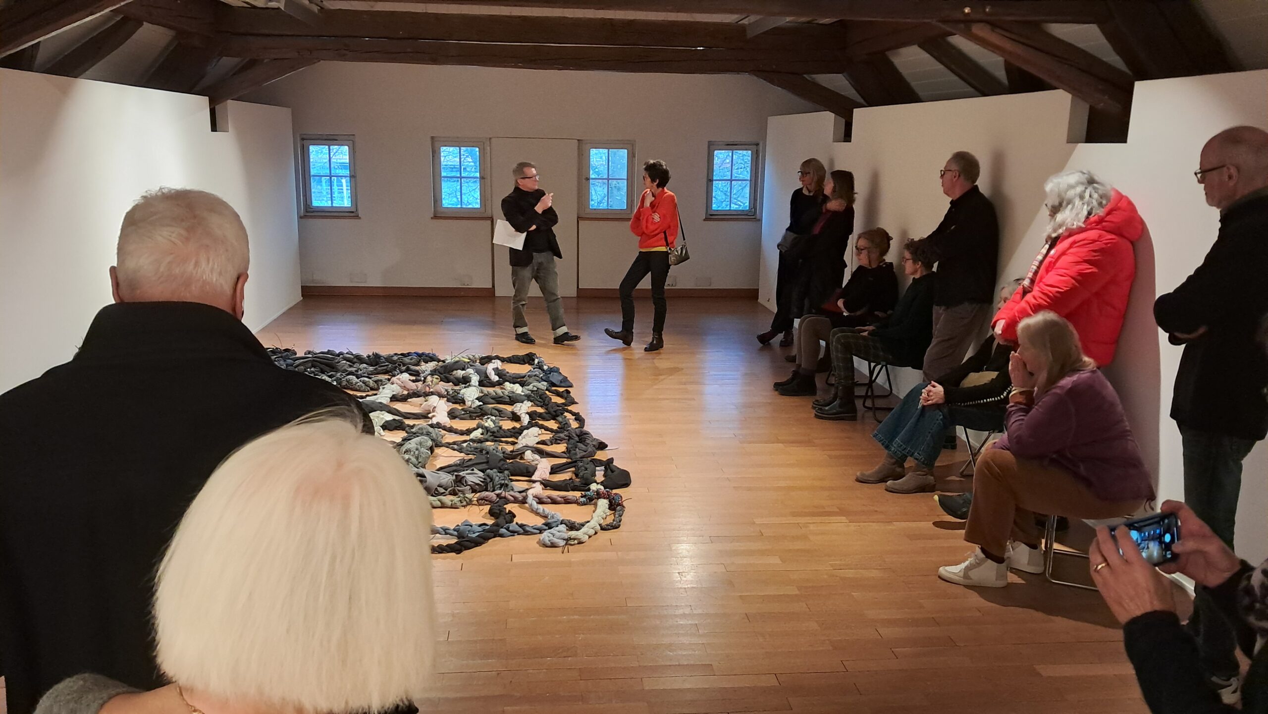 Die aktuelle Jahreszeit passt perfekt zur Darbietung dieser Ausstellung. Wie bei einem herbstlichen Baum, der langsam seine Blätter verliert, wird in den oberen Stockwerken das karge, aber unerlässliche Gerüst sichtbar. Nur noch wenige Farbtupfer zeugen von der Fülle des Sommers. Die Farben, vielfältiger als zuvor, sind mit den grossen Blättern nach unten gefallen. Nun kann die reiche Ernte eingefahren werden. Viele Kunstwerke der Ausstellung sind neu aus diesem Jahr, jedoch bieten einige ein Rückblick auf die letzten zehn Jahre. War vor 2020 nicht eine ganz andere Zeit? Hat sich unsere Wahrnehmung der Welt seither verändert?