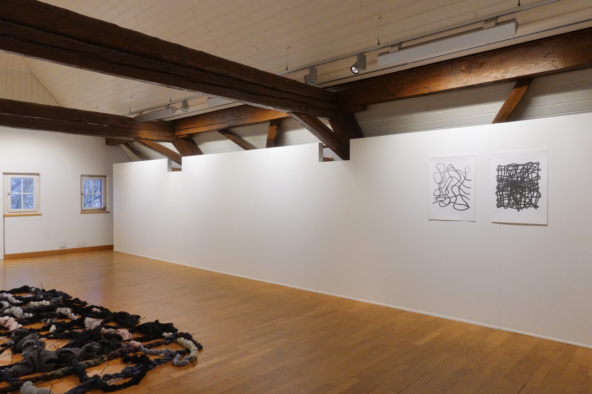 In dieser Ausstellung trifft das Kunstschaffen von Sadhyo Niederberger (*1962, lebt in Aarau) und Bettina Carl (*1968, lebt in Zürich) zum ersten Mal zusammen. Beiden gemeinsam ist eine experimentelle Arbeitsweise, die aus der Praxis des Zeichnens zu stammen scheint, welche die Befragung des „Malgrunds” und der künstlerischen Mittel umfasst und in der Konsequenz dessen eine Erweiterung des Bildes weit über ein Blatt hinaus bewirkt. Ebenfalls gemeinsam ist die stetige Befragung des Menschen, also dessen Körpers, seiner Art sowie der von ihm entwickelten Gesellschaft. Dazu bieten sie keine Antworten, sondern Anregungen und Fragen, die in ihren Kunstwerken versteckt sind.